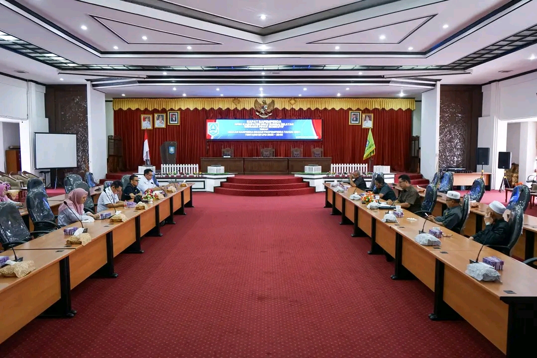 Rapat Bapemperda DPRD Kabupaten HSS Rahmat Iriadi yang dihadiri Kepala Bappelitbangda Kabupaten HSS Muhammad Arliyan Syahrial.