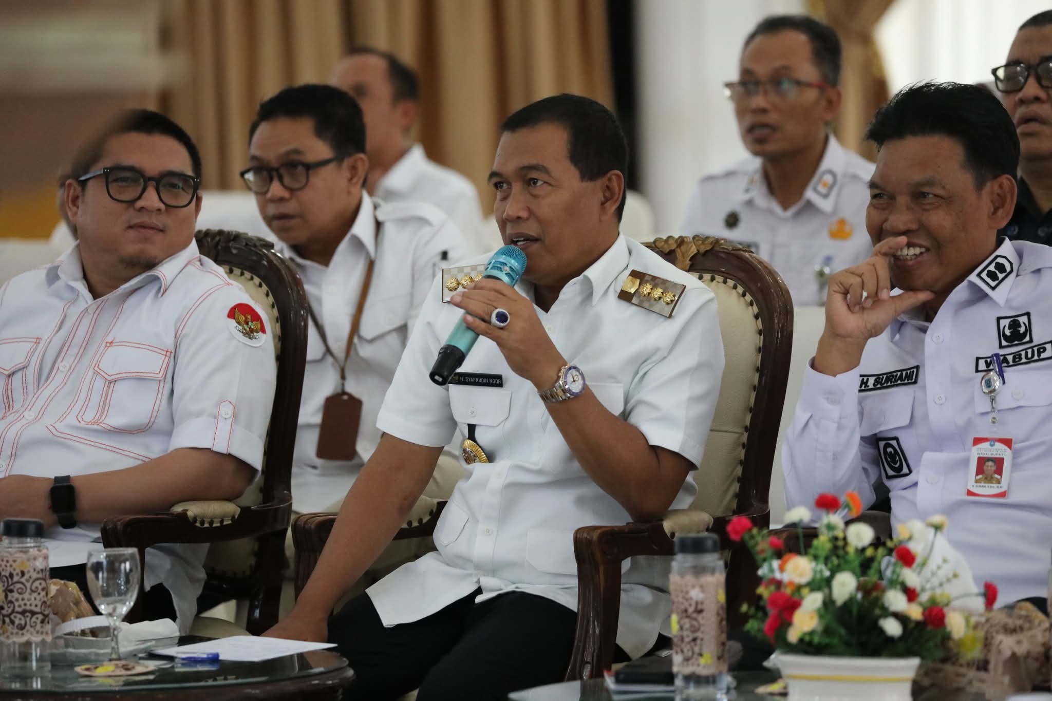 Turut mendampingi Wakil Bupati H Suriani, Ketua DPRD HSS H Ahmad Fahmi, Wakil Ketua I DPRD H Husnan, dan Wakil Ketua II DPRD HM Kusasi, Sekretaris Daerah H Muhammad Noor, sejumlah anggota DPRD, serta para pimpinan Organisasi Perangkat Daerah (OPD) di lingkup Pemerintah Kabupaten HSS.