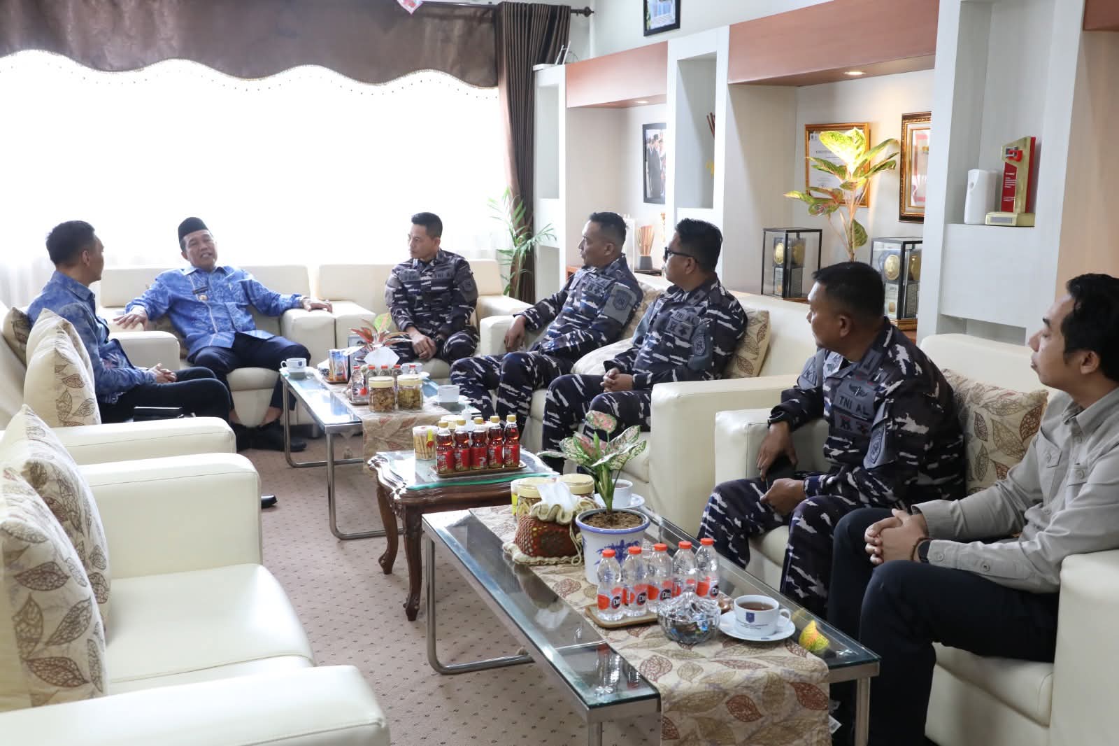 Dalam pertemuan tersebut, Bupati didampingi Kepala Dinas Sosial Kabupaten HSS, Nordiansyah. Sementara itu, Danlanal Banjarmasin hadir bersama sejumlah perwira dari jajarannya dalam suasana penuh keakraban dan sinergi.