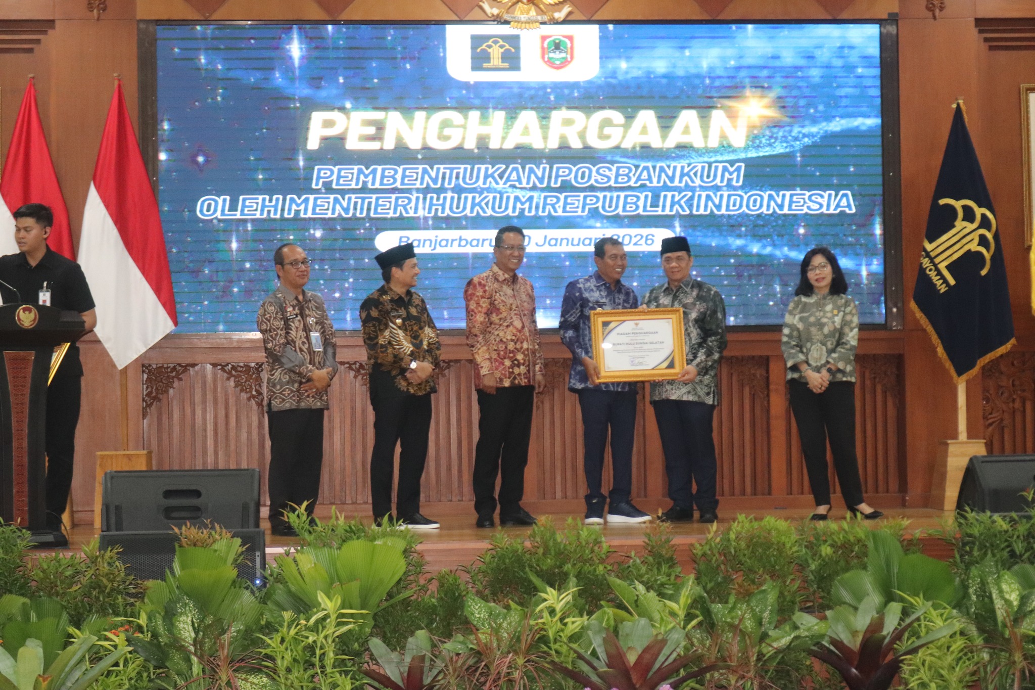 Bupati HSS H. Syafrudin Noor menerima langsung Piagam Penghargaan dari Menteri Hukum dan HAM RI sebagai bentuk apresiasi terhadap pelaksanaan dan penguatan Posbakum hingga ke desa dan kelurahan.