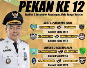 Kandangan,Kradionews.com- Liga Sepak Bola Hulu Sungai Selatan (HSS) U-18 2025 Piala Bupati memasuki pekan ke-12 […]