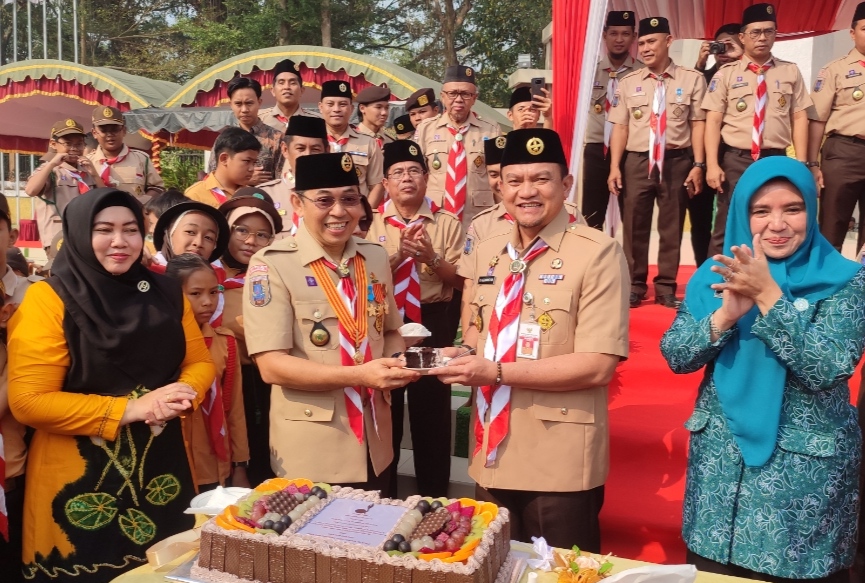 Kak Choe mengucapkan terima kasih kepada Pj Bupati yang telah berkenan hadir dan menjadi pembina upacara peringatan hari Pramuka tahun ini.