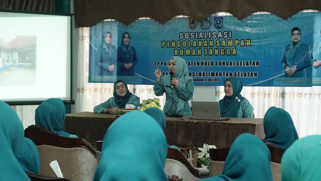 Kandangan, kradionews.com- Dalam rangka meningkatkan kesadaran masyarakat Ketua Tim Penggerak PKK Provinsi Kalimantan Selatan Hj Fathul Jannah Muhidin lakukan sosialisasi tentang pengolahan sampah rumah tangga, di Sekretariat TP PKK Kabupaten HSS, Rabu (7/5/2025).