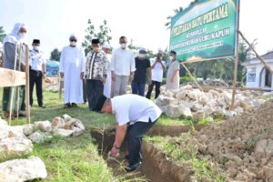Bupati HSS bersama AGM Letakan Batu Pertama Pembangunan Mushala di Areal makam Guru Kapuh