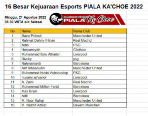 Daftar Gamers PES yang Lolos Babak 16 Besar Piala Ka Choe
