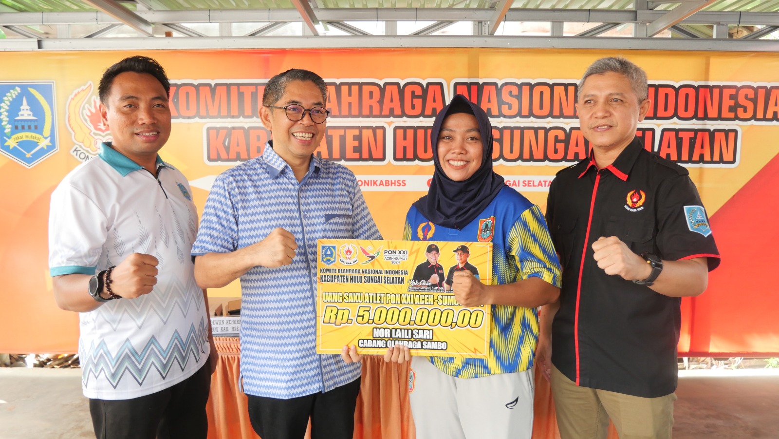 Ketua Umum KONI Kabuapetan HSS, Rahmat Hidayat, mengatakan uang saku diberikan kepada 19 atleh HSS yang mewakili Kalimantan Selatan (Kalsel) di ajang PON Aceh, Sumut, masing-masing Rp5 juta.