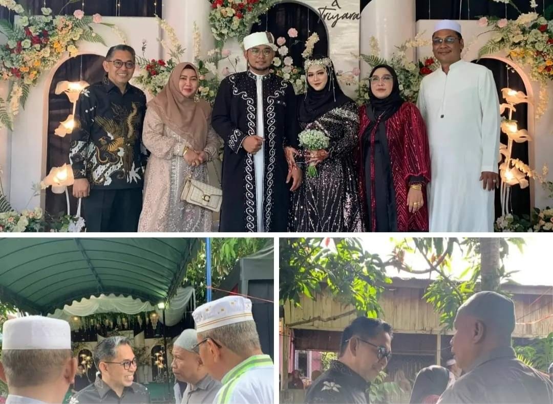 Kandangan, kradionews.com -Wakil Bupati (Wabup) Hulu Sungai Selatan (HSS) periode 2018-2023 Syamsuri Arsyad yang akrab disapa Kak Choe menghadiri menghadiri undangan resepsi pernikahan Nor Muhammad Hadi dengan Triyara, di Jalan Pasungkan, RT 01 RW 01, Kecamatan Daha Utara, Kabupaten Hulu Sungai Selatan, Sabtu (13/7/2024).