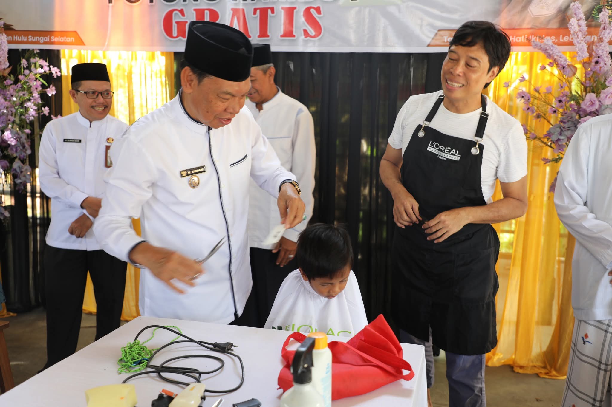 Sementara itu, Ketua Dewan Masjid Indonesia (DMI) Kabupaten HSS, H. Muhammad Thaha, dalam laporannya menyampaikan bahwa kegiatan potong rambut gratis merupakan program rutin DMI sebagai bentuk kepedulian sosial kepada masyarakat.